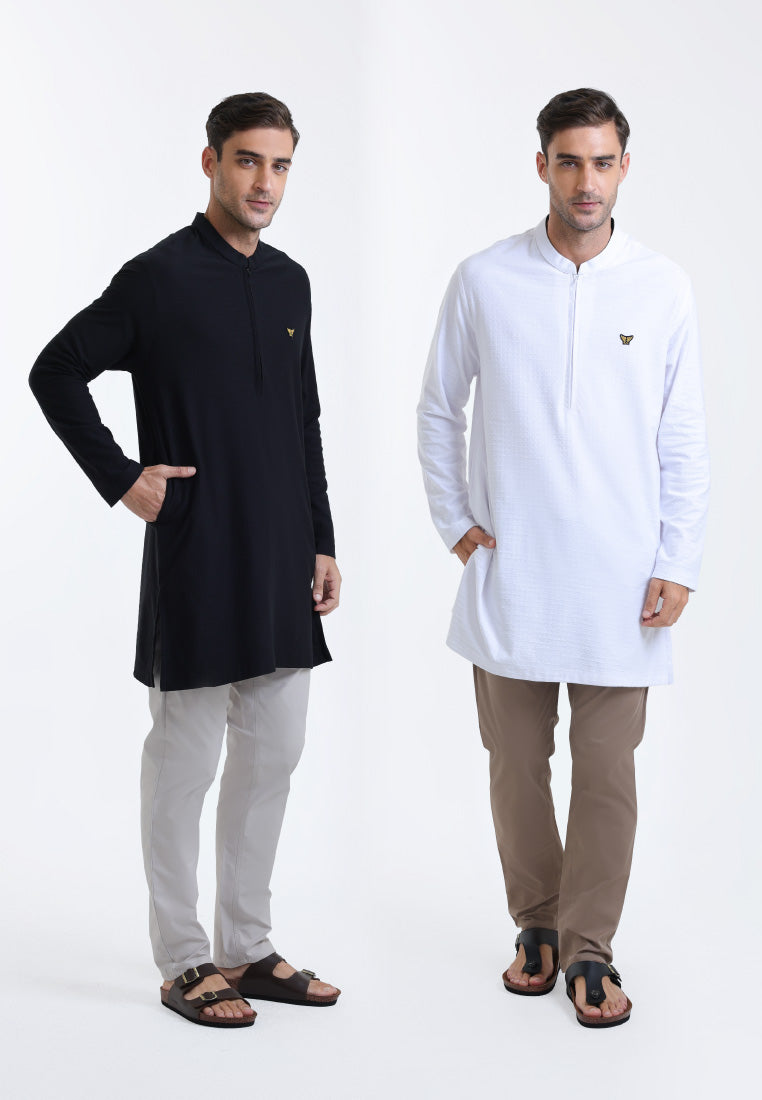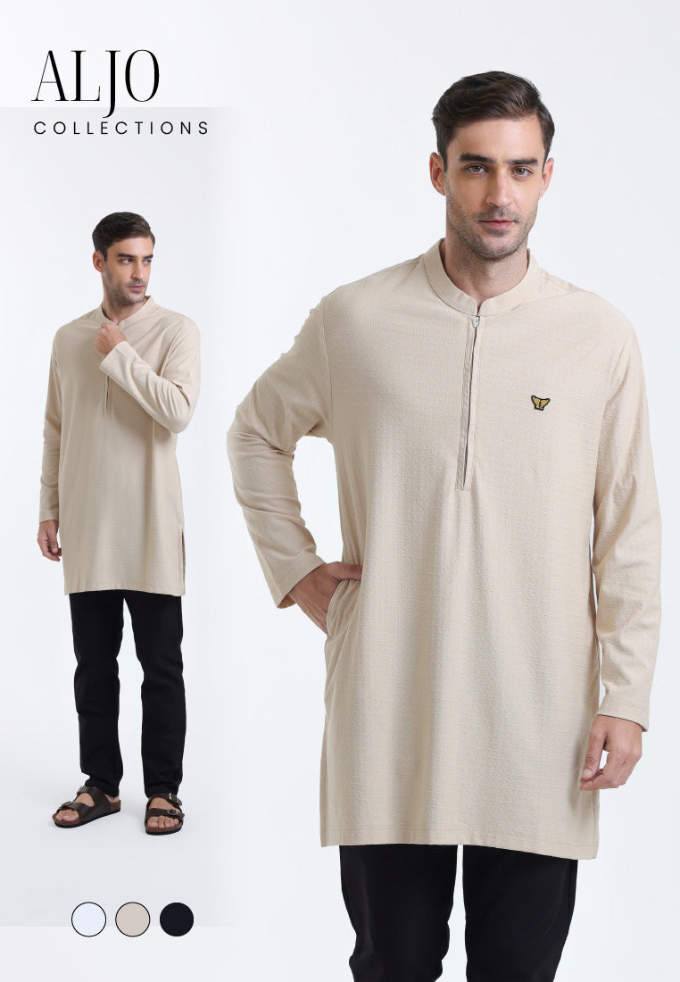 Emba Classic - Aljo Kemeja Koko Kurta Pria Lengan Panjang Regular Premium Textured Knit