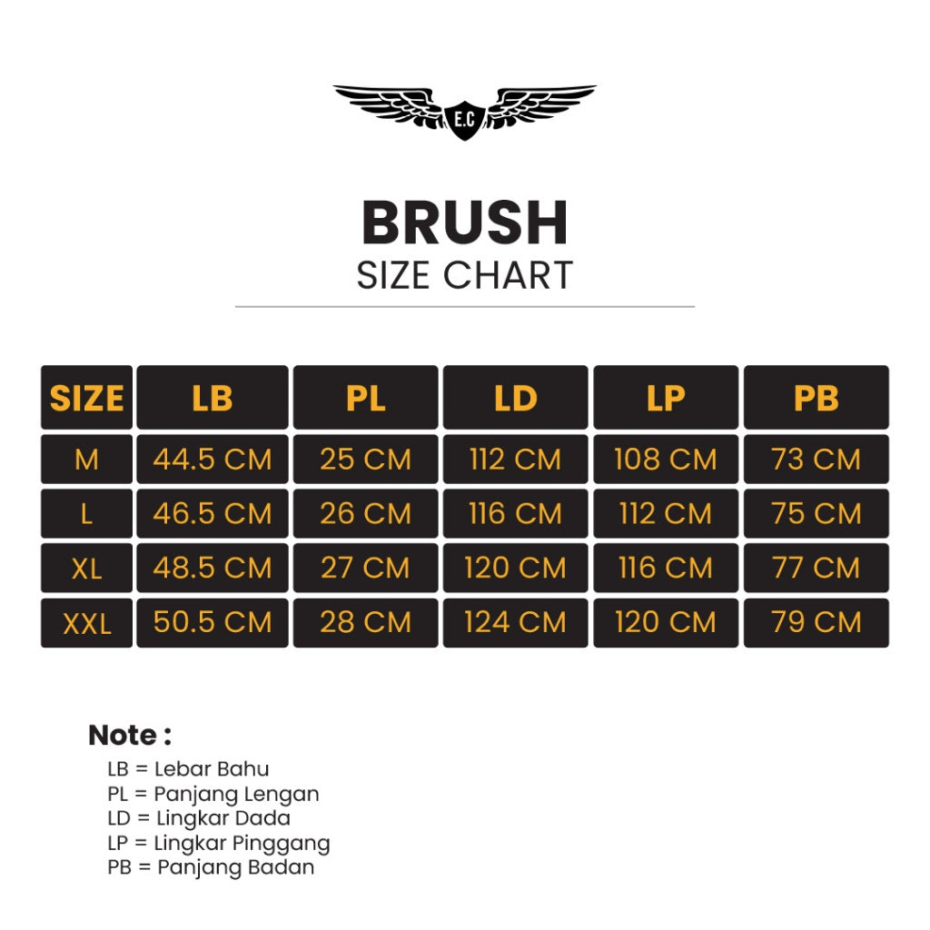 Lebar bahu × Panjang lengan × Lingkar dada × Lingkar pinggang × Panjang badan