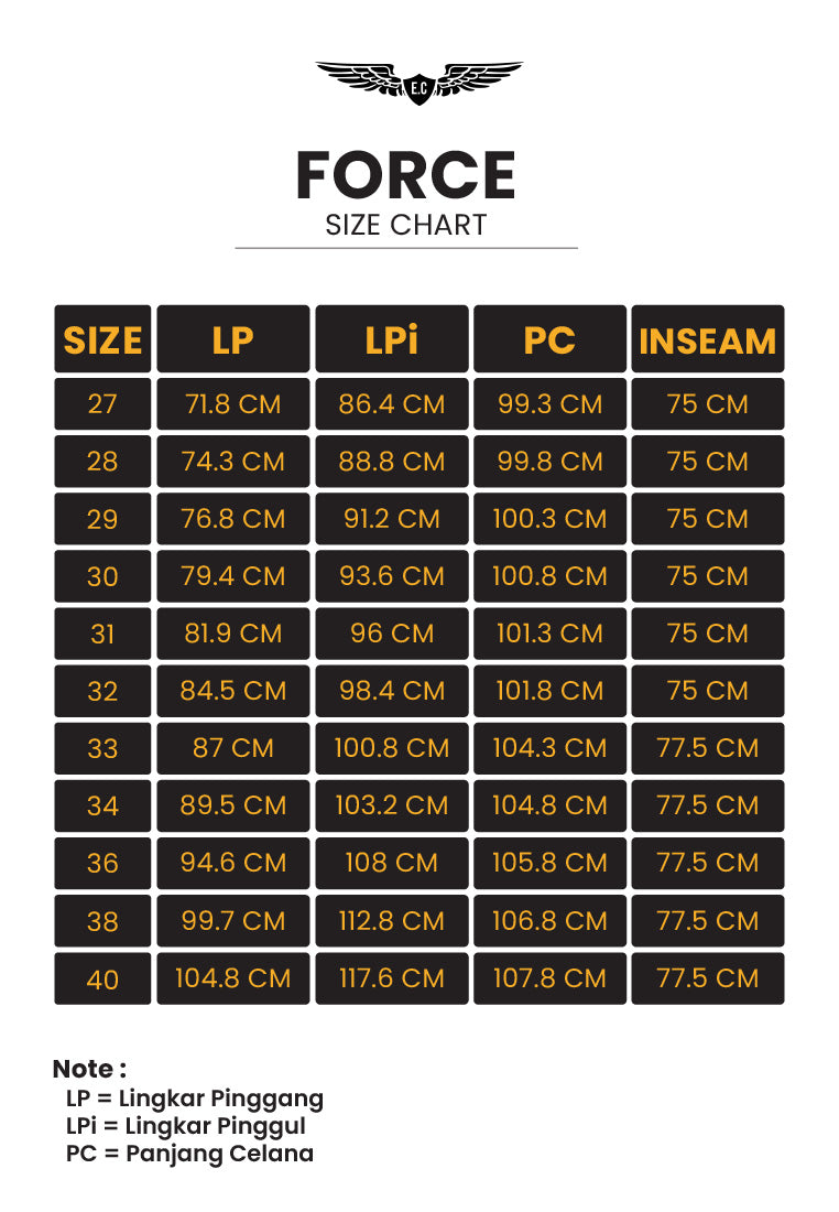 Lingkar pinggang x Lingkar pinggul x panjang celana x inseam [toleransi produksi +/- 4cm]