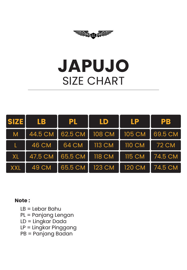 Lebar bahu x Panjang Lengan x Lingkar dada x lingkar pinggang x Pnjang badan [toleransi produksi +/- 4cm]