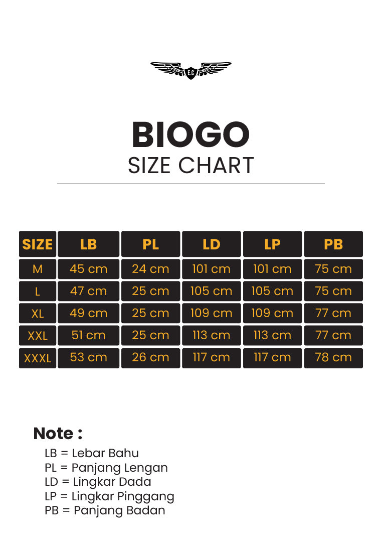 Lebar bahu x Panjang Lengan x Lingkar dada x lingkar pinggang x Pnjang badan [toleransi produksi +/- 4cm]