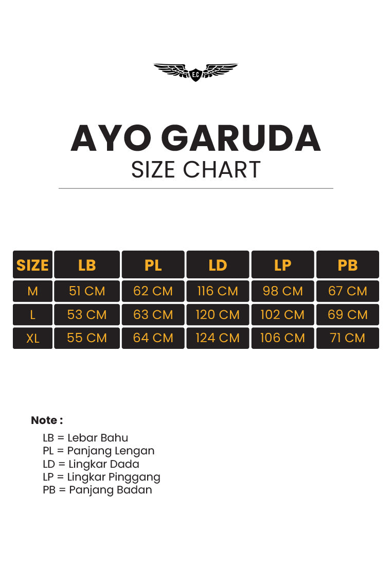 Lebar bahu x Panjang Lengan x Lingkar dada x lingkar pinggang x Pnjang badan [toleransi produksi +/- 4cm]