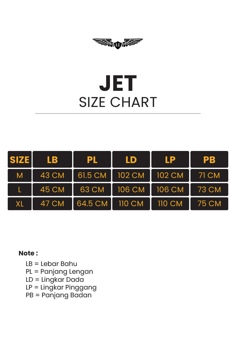 Lebar bahu x Panjang Lengan x Lingkar dada x lingkar pinggang x Pnjang badan [toleransi produksi +/- 4cm]