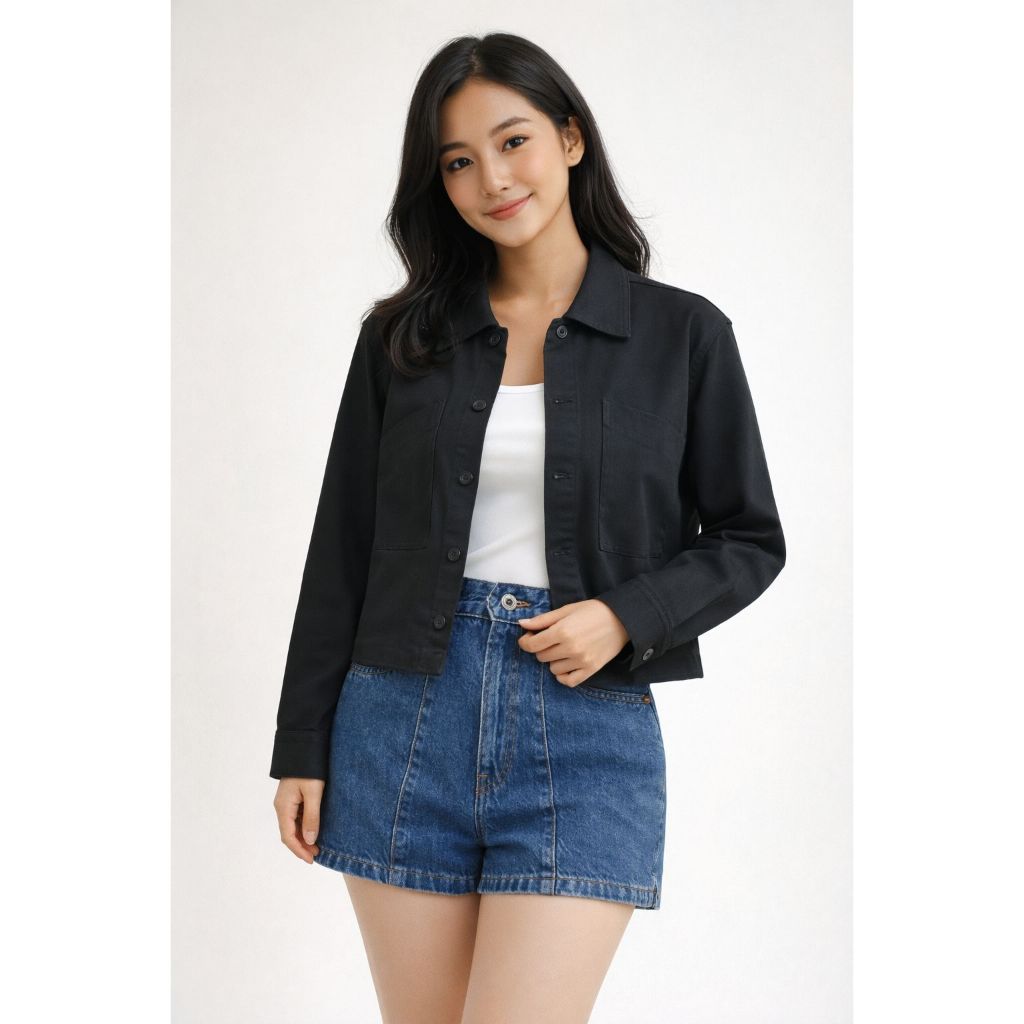 Emba Ladies - Marve Jaket Jeans Wanita Warna Black