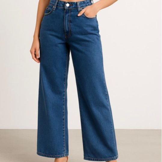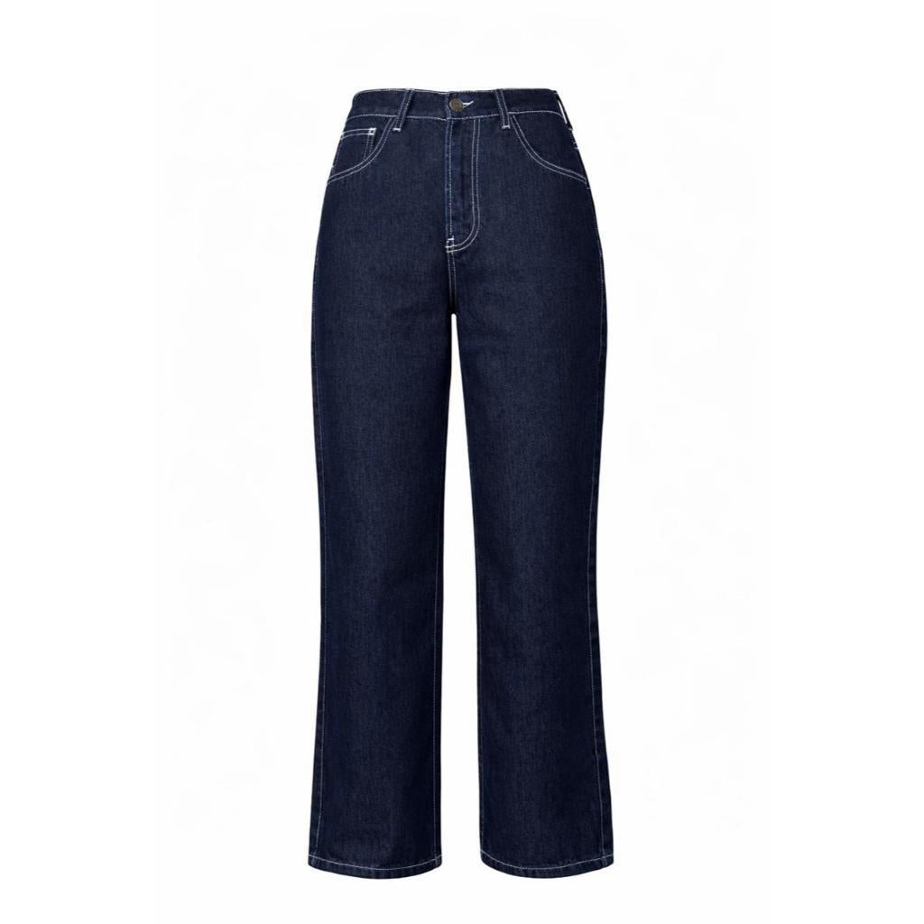 - Celana jeans potongan longgar dengan detail jahitan yang serasi.