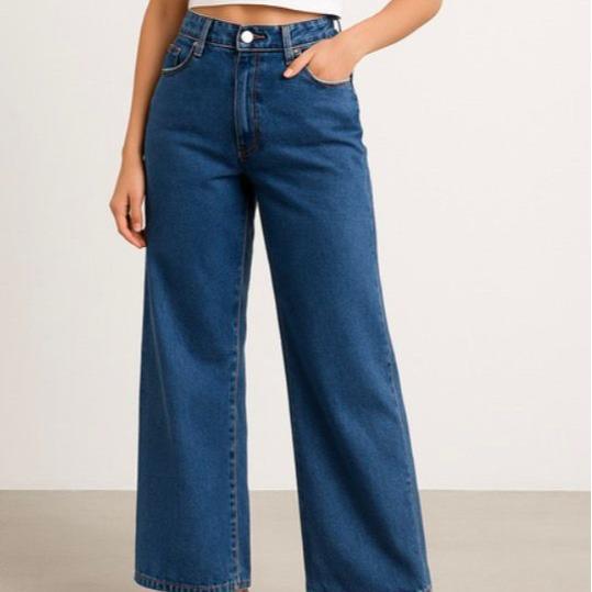 - Celana jeans tampilan vintage dengan efek pudar alami.
