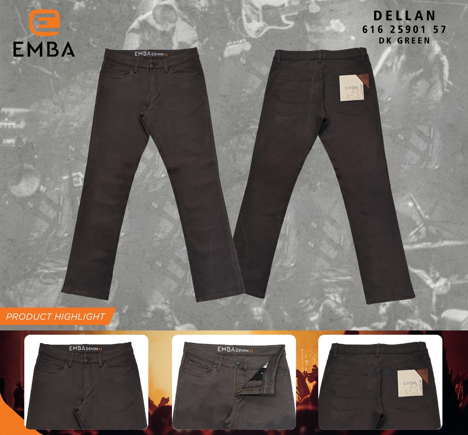 Emba Denim - BS08 Katun Twill Celana Panjang Katun Pria Regular Fit Stretch Dark Green