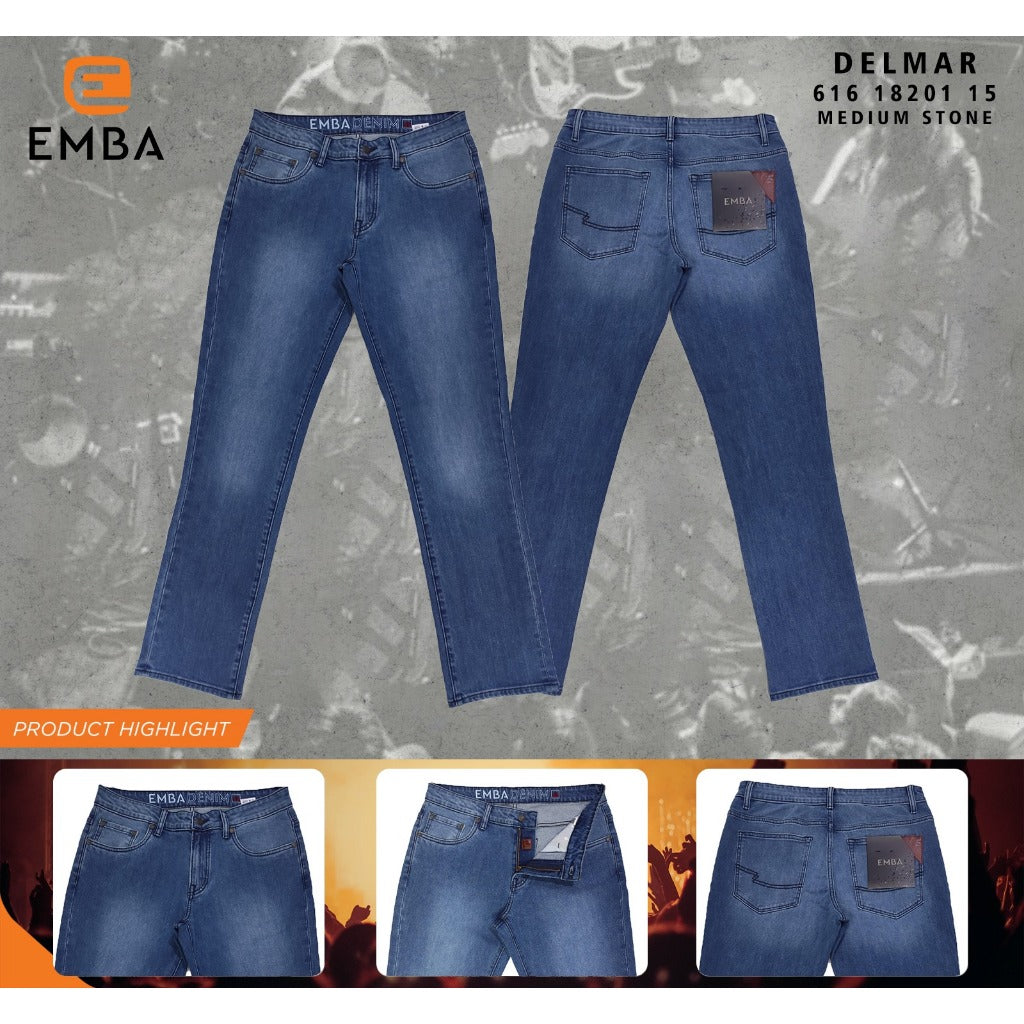 Celana Panjang Denim Pria Regular Fit dari Emba Denim Delmar. Celana ini dirancang untuk pria dengan gaya casual yang nyaman. Cocok untuk berbagai aktivitas sehari-hari. Aman dan Nyaman di Gunakan untuk aktifitas aktif