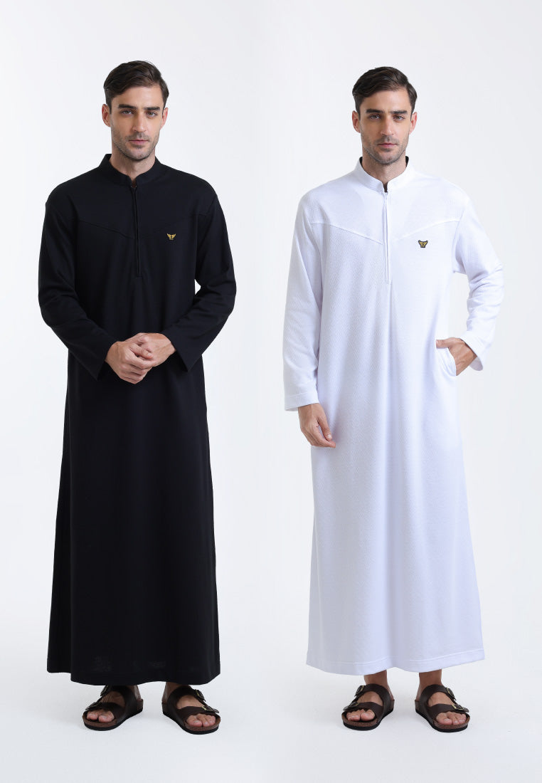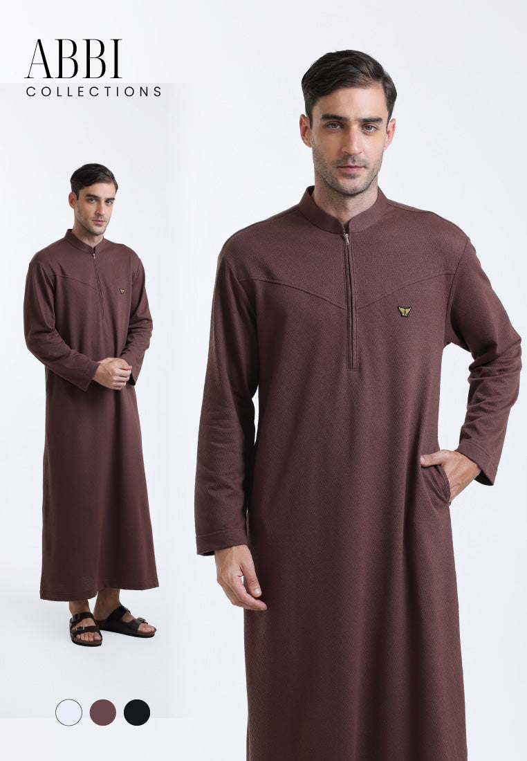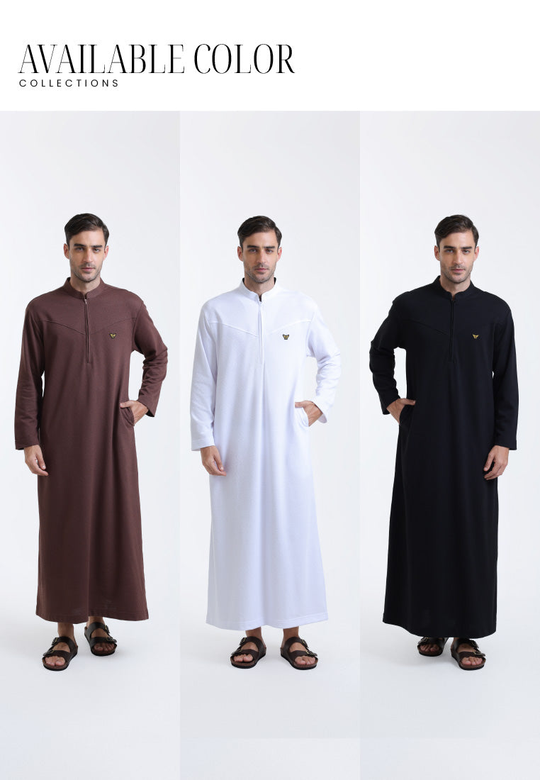 - Gamis pria desain basic modest dengan tampilan rapi dan elegan Kerah mandarin dengan detail resleting depan
