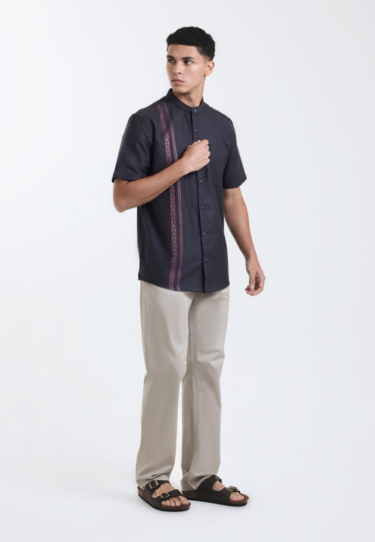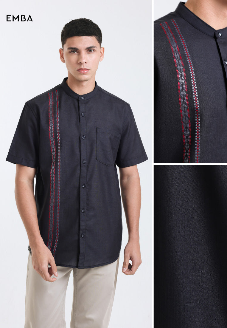 Emba Denim - New Mustafa Kemeja Koko Pria Lengan Pendek Regular Fit Black